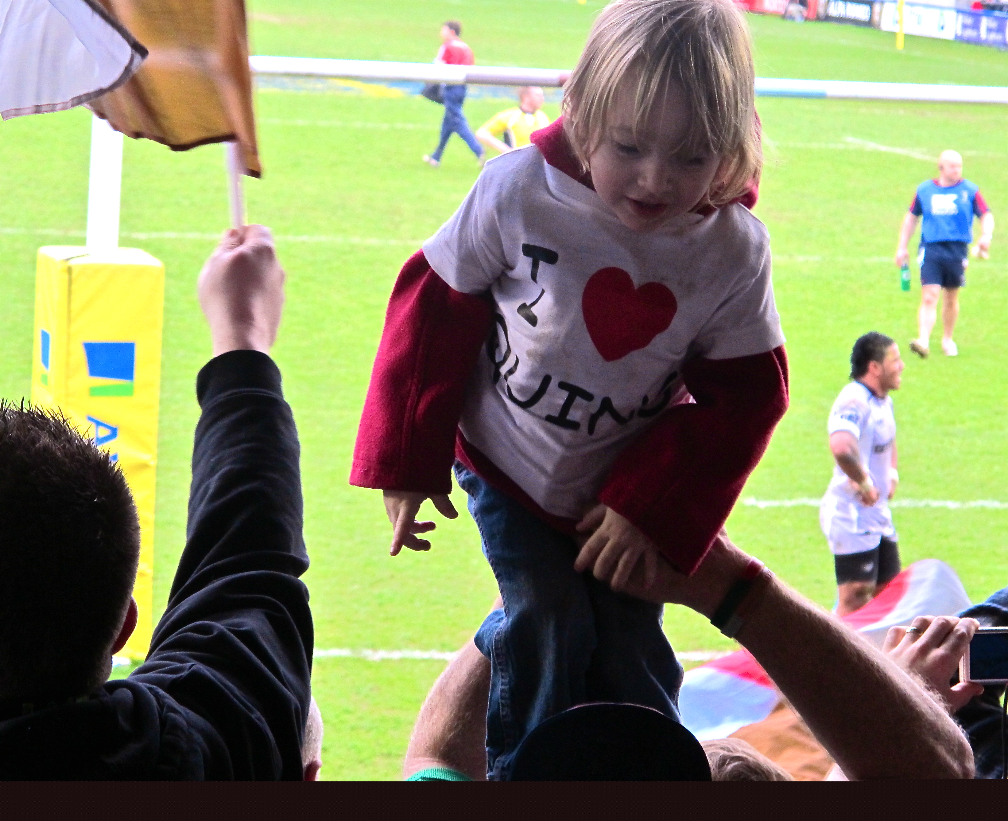Finiti gli 80 minuti i giocatori escono in mezzo ai tifosi che si sono intrattenuti a brindare o fare giocare i bambini nel campo di gioco esattamanente dove fino a pochi minuti prima stavano spingendo e combattendo le tigri e gli arlecchini. È una delle cose…