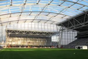 Trentamila spettatori, una gigantesca calotta trasparente di 20.000 metri quadri – supportata da cinque archi alti più di cento metri. Posizionata in modo da ricevere e riproiettare, raddoppiandola, l’intensità della luce solare, anche – e soprattutto – quando piove. Il tetto raggiunge i 47 metri di altezza nel punto più alto, 37 in quello più basso: è stato calcolato che statisticamente un pallone ovale non viene calciato più in alto di 29,4 metri, quindi nessuna preoccupazione di centrare il soffitto (…) uso esasperato di pannelli solari e forme eco-sostenibili di energia: il complesso è stato realizzato con il 97% di materiale riciclato. Il New Otago Stadium (Forsyth Barr è il nome ufficiale) sorge non lontano da Logan Park e dai campi degli Otago Highlanders, dove prima c’era una fabbrica di pesce e curiosamente o forse nemmeno troppo – qui la popolazione è tutta di origine scozzese – accanto ad un fiume che si chiama Leith, come quello di Edimburgo.