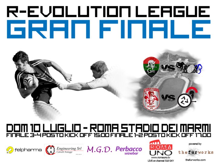 ItaliaRFL invita tutti a partecipare al R-Evolution League Gran Finale (Campionato Italia di Rugby a XIII). Si terrà Domenica 10 luglio allo Stadio dei Marmi a Roma.