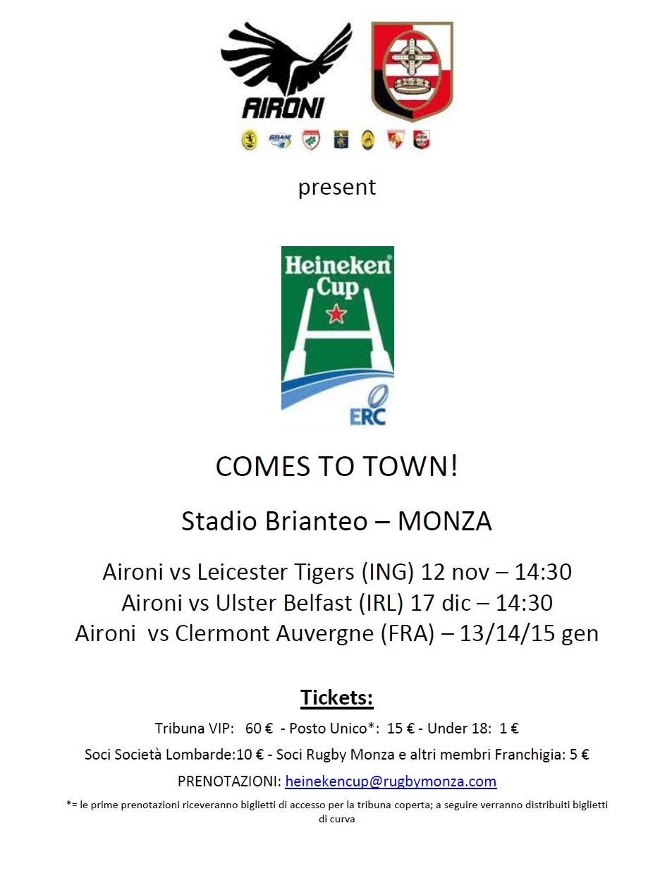 Aironi in volo su Monza per l’Heineken Cup: come trovare i biglietti Gli Aironi si spostano a Monza per l’Heineken Cup. La prima partita è con il Leicester di Castrogiovanni… Condividi:Tweet Condividi su WhatsApp (Si apre in una nuova finestra) WhatsApp Invia un link a un amico via e-mail (Si apre in una nuova finestra) E-mail Condividi su Telegram (Si apre in una nuova finestra) Telegram Condividi su Tumblr Condividi su Reddit (Si apre in una nuova finestra) Reddit Stampa (Si apre in una nuova finestra) Stampa Mi piace Caricamento... Correlati