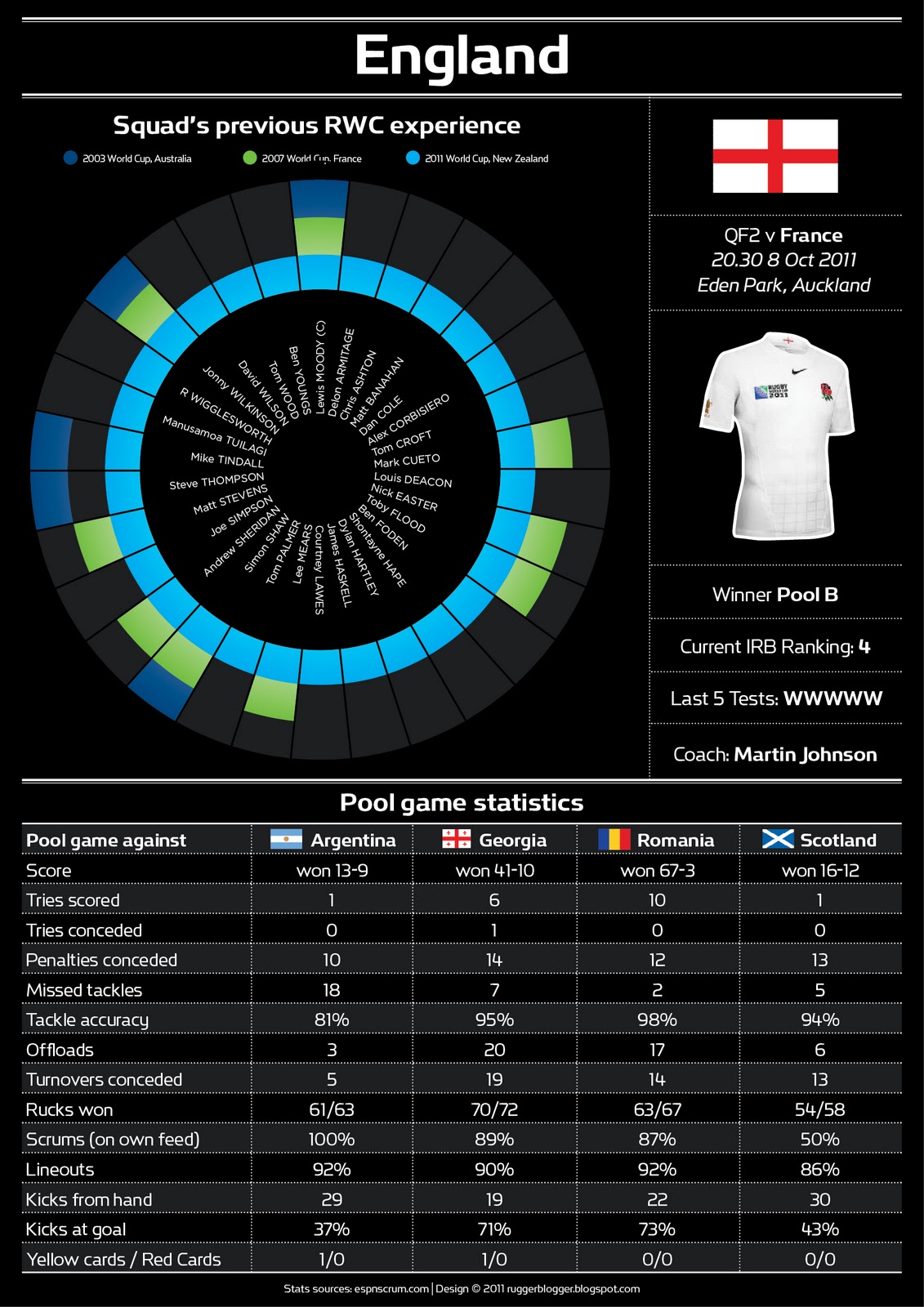 Quarti di finale RWC: la preview infografica di Francia-Inghilterra