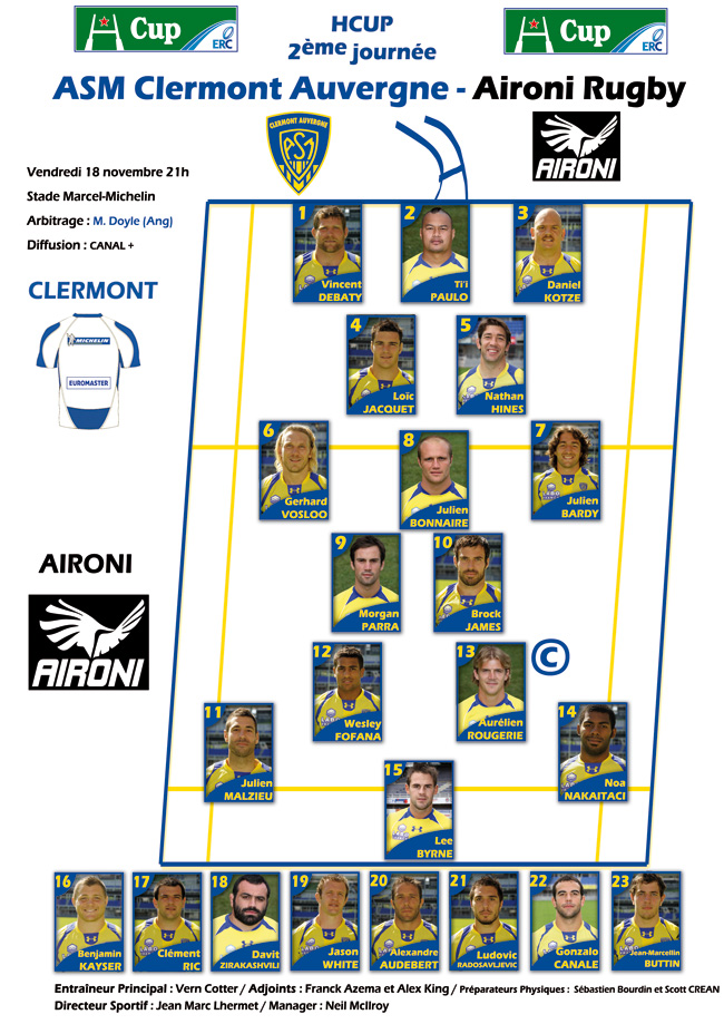 Stasera alle 21 – diretta su Sky Sport – gli Aironi scendono in campo a Clermont contro la squadra di casa, attualmente al secondo posto nella classifica del Top 14. Un’altra montagna enorme da scalare per la franchigia lombardo-emiliana.
