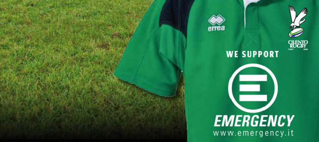 Dal logo sulle maglie da gara al terzo tempo solidale, una condivisione di valori in nome del Rugby. A partire dalla stagione 2011/2012 i bambini di Cilento Rugby ASD porteranno il nome di Emergency in giro per la Campania. “We Support Emergency” è il messaggio che si leggerà sullo spazio centrale della maglia da gara dei piccoli falchi verdeblu nel corso delle gare e dei tornei e dei concentramenti previsti.