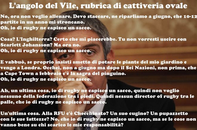 3. Solo uno come Dondi poteva metterlo sotto contratto, rinnovarglielo per 4 anni all’insaputa degli altri Consiglieri Federali, per poi cacciarlo via dopo un’anno e paargli anche gli altri 3……Scena già vista con Mascioletti (contratto quadriennale ma dopo il mondiale messo ad allenare l’under21. Il tecnico dell’u.21 più pagato al mondo), Jonhstone (che con la liquidazione dei 3 anni di rescissione anticipata del contrato con la FIR si è comprato un resort su un atollo alle Fiji) e Kirwan. Solo a Berbizier non è stato rescisso il contratto anticipatamente dovendogli pagare gli stipendi previsti…….. Grande amministratore il ns Presidente Dondi (solo perchè i soldi non erano i suoi!!!!!!!)