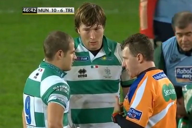 E il trequarti sudafricano se dovesse scendere in campo chi ritroverebbe come arbitro? Esatto, quel Nigel Owens con il quale durante Munster-Benetton di poche settimane fa ha dato vita a quel siparietto divenuto ormai celeberrimo e che vi ripropongo qui sotto.
