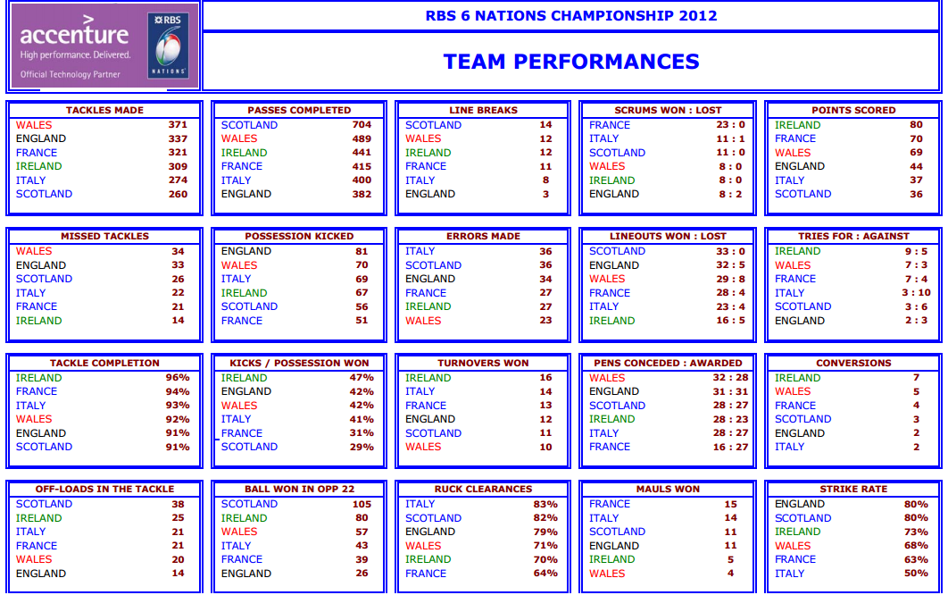 Una scheda di statistiche per fotografare le prime tre giornate del Sei Nazioni 2012