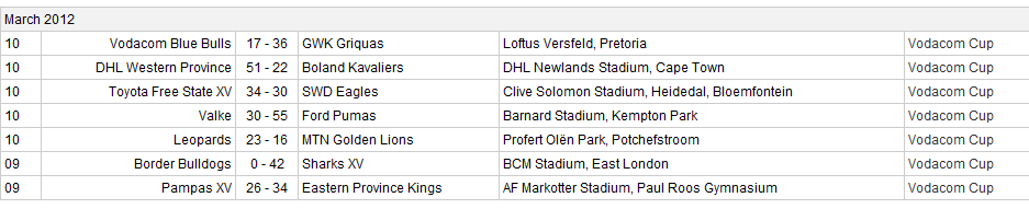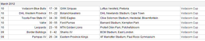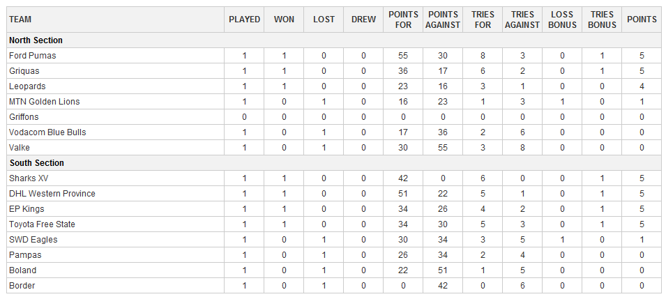 Vodacom Cup: risultati e classifica dopo il primo turno