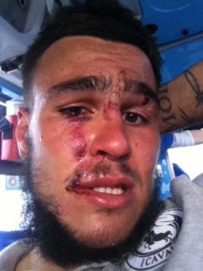 10. Si vabbe ma ragazzi stiamo esagerando un po.. tutto sommato siamo su un campo da rugby.. e poi sta foto scenografica stile torture prigionia Afghanistan è anche un po patetica, due tagli un po di gonfiore per l’edema ma niente di più di ciò che ognuno di noi puoi raccontare alle amiche sui suoi trascorsi rugbistici..