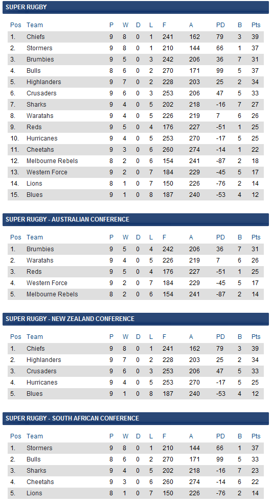 | 08:35 | Super Rugby Overall Group | Chiefs | 33 – 14 | Hurricanes | ||||