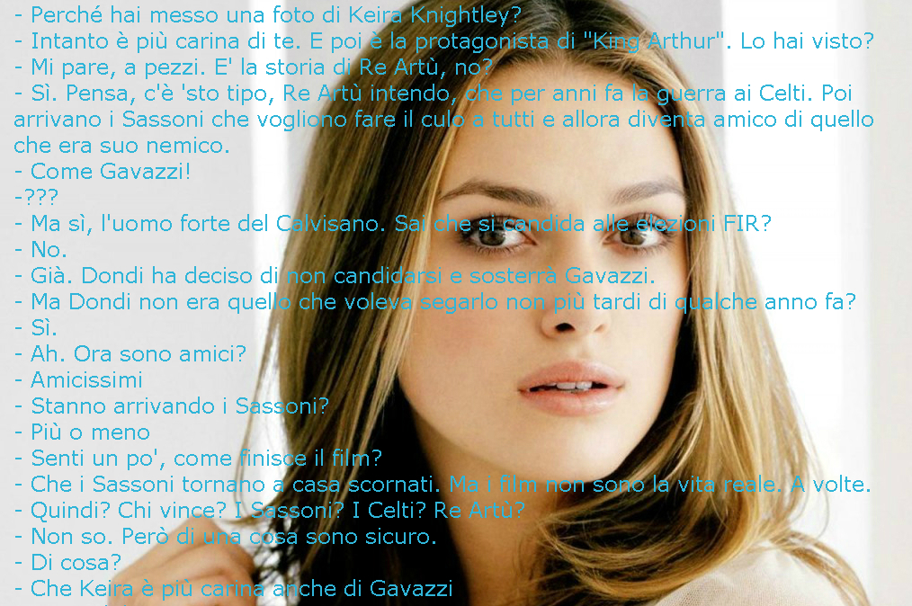 1. Io lo so chi è più carino, però voi dide che a dondi piace più Gavazzi o Keira?…. io rimango per keira ma forse mi baso su altri canoni….