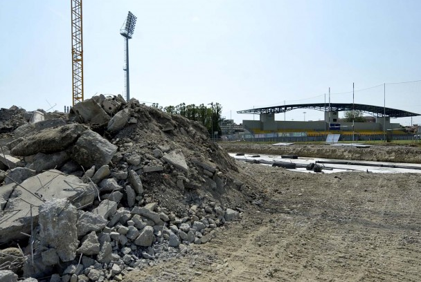 I lavori sembra li stanno facendo dientro i pali. Io avevo capito che mettevano le tribune di innicenti dal lato opposto della tribuna.