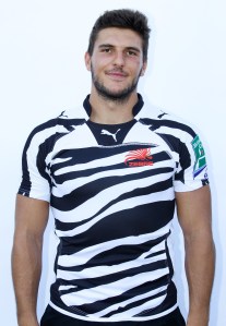 Kit Gara Rabodirect Pro12 Away: maglia blu con stampa “Zebre” in azzurro. Pantaloncino blu con inserti bianchi.
