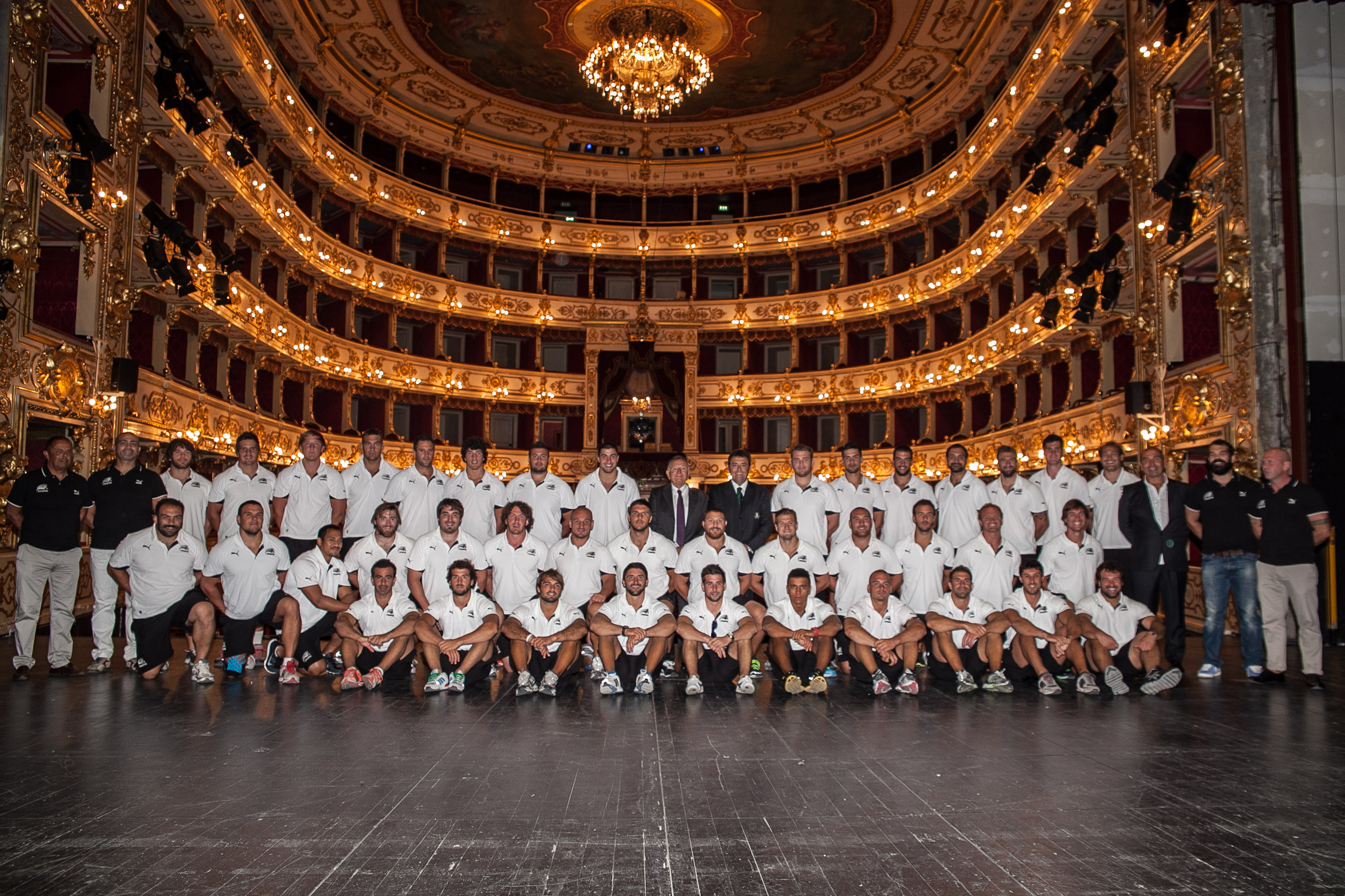 Tre giorni all’esordio in RaboDirect PRO12 per le Zebre Rugby. La nuova franchigia italiana di RaboDirect PRO12 ed Heineken Cup giovedì mattina lascerà Parma e volerà in Galles dove, venerdì sera (19.00 locali, 20 italiane), scenderà in campo al “Rodney Parade” affrontando i Newport-Gwent Dragons nel primo turno del torneo celtico. Questa mattina, in attesa di veder ufficializzato il primo XV titolare per la sfida inaugurale, la squadra al completo si è ritrovata al Ridotto del Teatro Regio di Parma per la presentazione ufficiale alla città ed alla stampa. A tenere a battesimo la neonata franchigia a gestione federale, nel corso del vernissage al Ridotto, il Presidente della FIR Giancarlo Dondi ed il Sindaco di Parma Federico Pizzarotti.