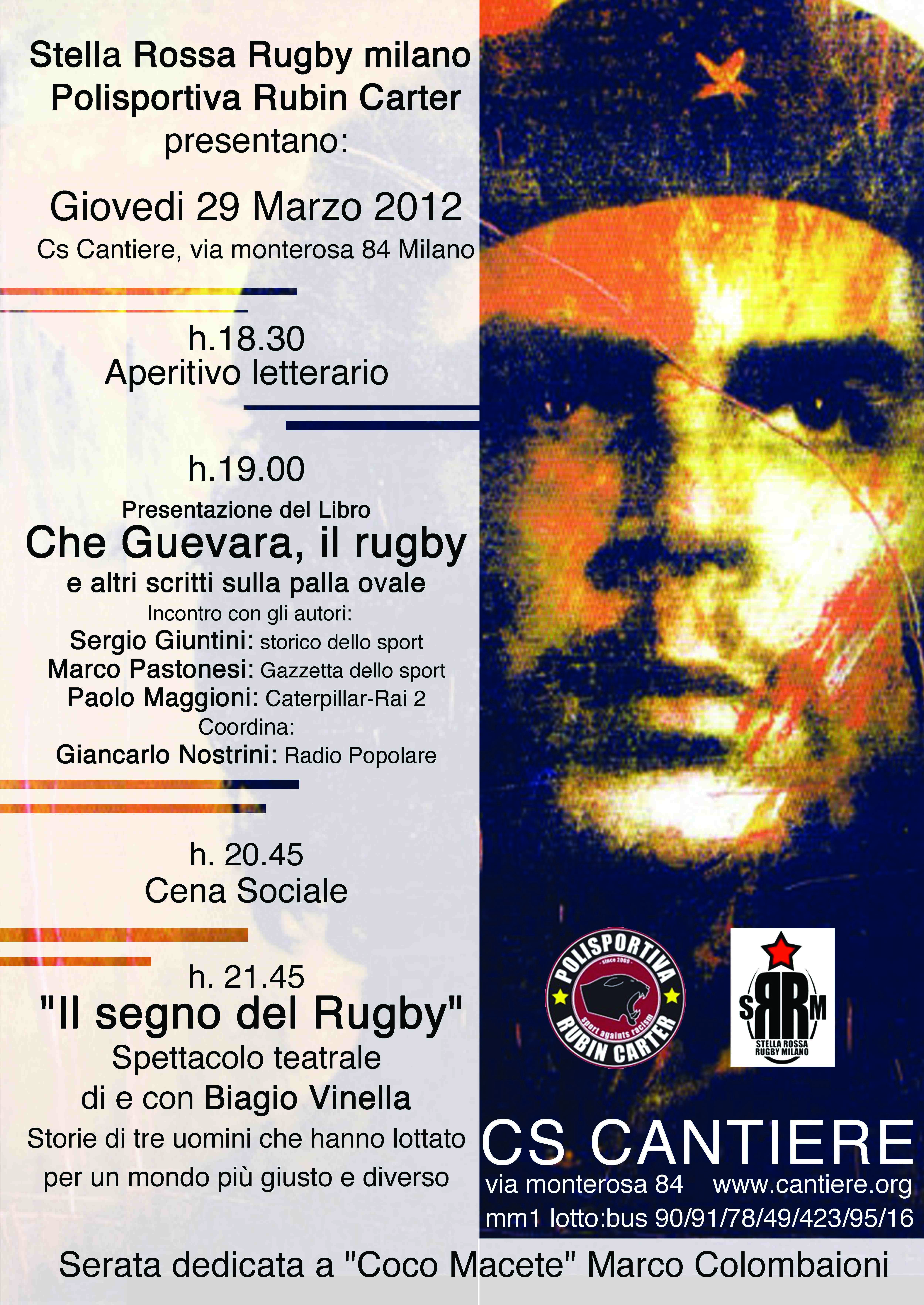 Una serata dedicata a Coco e per autofinanziarsi (detto in parole brutali: pagarsi il campo). La Stella Rossa Milano ha organizzato per giovedì 29 marzo un evento dove il rugby si incrocerà con la letteratura e il teatro. Per presentare un libro sul rapporto tra Che Guevara e la palla ovale saranno presenti alcuni degli autori, da Marco Pastonesi a Paolo Maggioni.