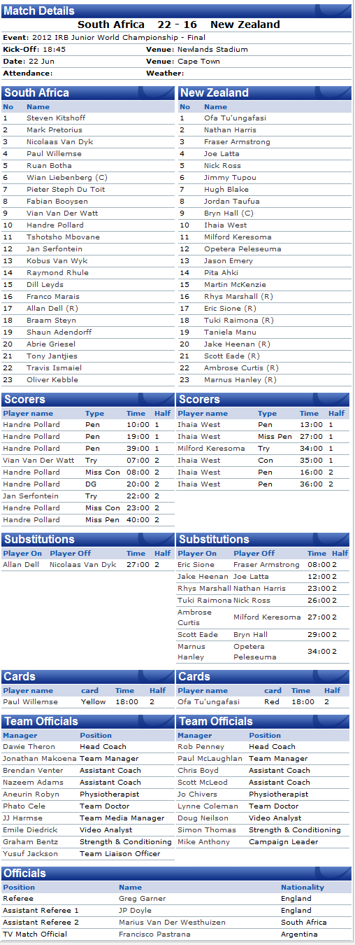 Fiji: Vuibau; Kerevi J., Galala (21’ st. Seruvalu), Kerevi S., Lea (31’ st. Ratukove); Mocelutu (21’ st. Gavidi), Cavuilati; Simolo, Baivatu (19’ st. Nawaqa), Ratumuri; Raikabula, Macu (33’ st. Kaitoga); Tivitivi (33’ st. Kell), Sassen (33’ st. Qadrodro), Hodgman (cap)