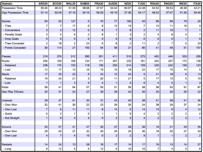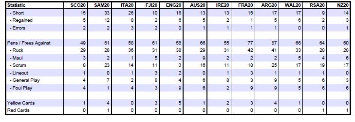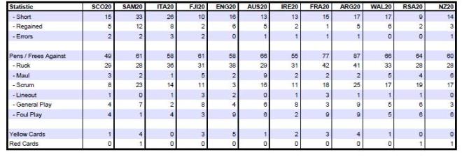 I gallesi prendono il quarto posto a discapito degli inglesi, gli argentini scavalcano i francesi. Allunga ancora la Scozia che ora si affaccia tra le prime dieci, Italia stabile alla dodicesima posizione ma Tonga è più vicina e dietro il Canada si allontana.