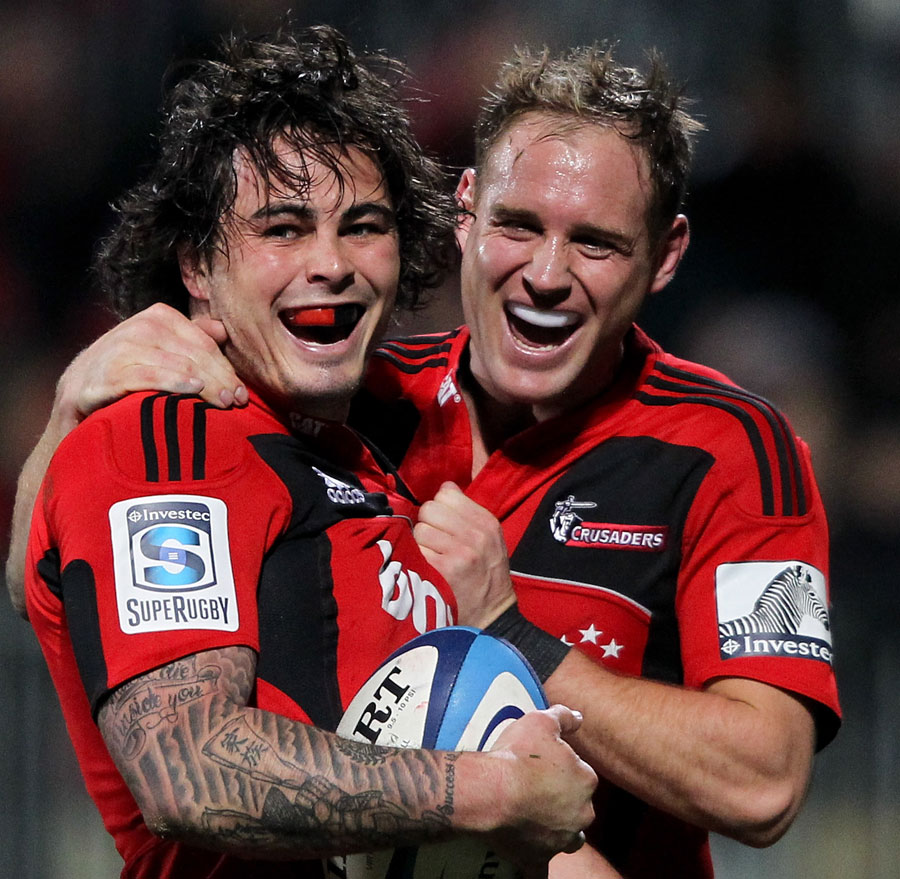 Crusaders: 15 Israel Dagg, 14 Adam Whitelock, 13 Robbie Fruean, 12 Ryan Crotty, 11 Zac Guildford, 10 Dan Carter, 9 Andy Ellis, 8 Richie McCaw (c), 7 Matt Todd, 6 George Whitelock, 5 Samuel Whitelock, 4 Luke Romano, 3 Owen Franks, 2 Corey Flynn, 1 Wyatt Crockett.