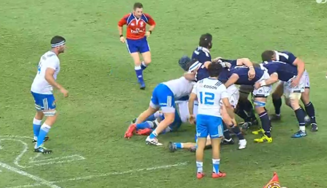 Gara che rimane contratta con la squadra di O’Sha di commette tanti – troppi – falli e che al 38′ deve capitolare dopo una prolungata azione scozzese nei suoi 22 metri con Price che schiaccia la palla in meta. Russell manda la palla della conversione sul palo ma il primo tempo purtroppo non finisce qui: al 41′ bellissimo pallonetto di Finn a servire Visser che marca la seconda meta, si va al riposo sul 3-15 per il XV del cardo.