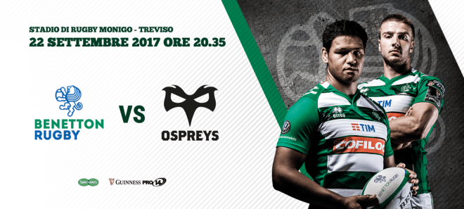Veniamo alla partita: Benetton Treviso di nuovo in campo questa sera al Monigo contro gli Ospreys con l’obiettivo di bissare la prova di Edimburgo e possibilmente pure il risultato. Partita assolutamente alla portata dei biancoverdi, almeno nelle sue premesse che poi il campo… Gallesi che finora hanno battuto le Zebre (a fatica) alla prima giornata del torneo per poi incappare in due sconfitte a Glasgow (35-10) e in casa contro il Munster (16-21).